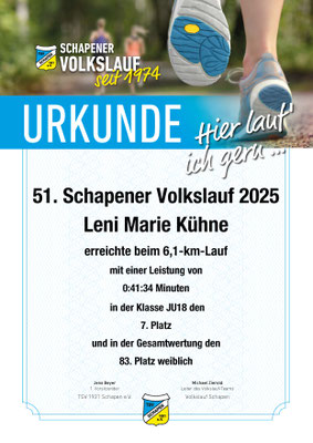 7. Platz (AK W18) Leni Marie Kühne (0:41:34)