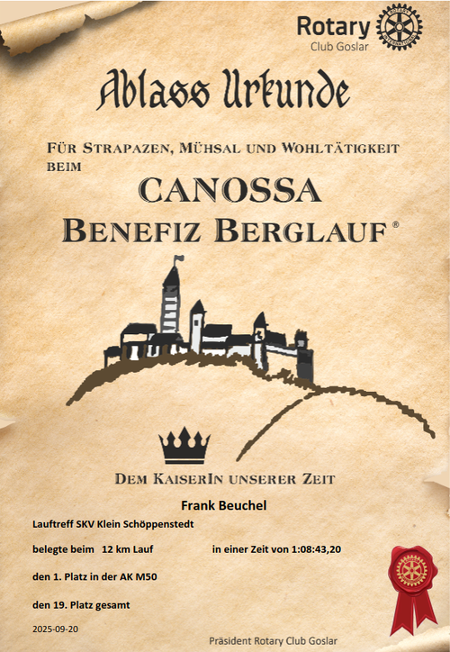 Unser Lauftreff hat am 20. September beim Canossa Berglauf 2025 sehr gute Platzierungen erreicht.
